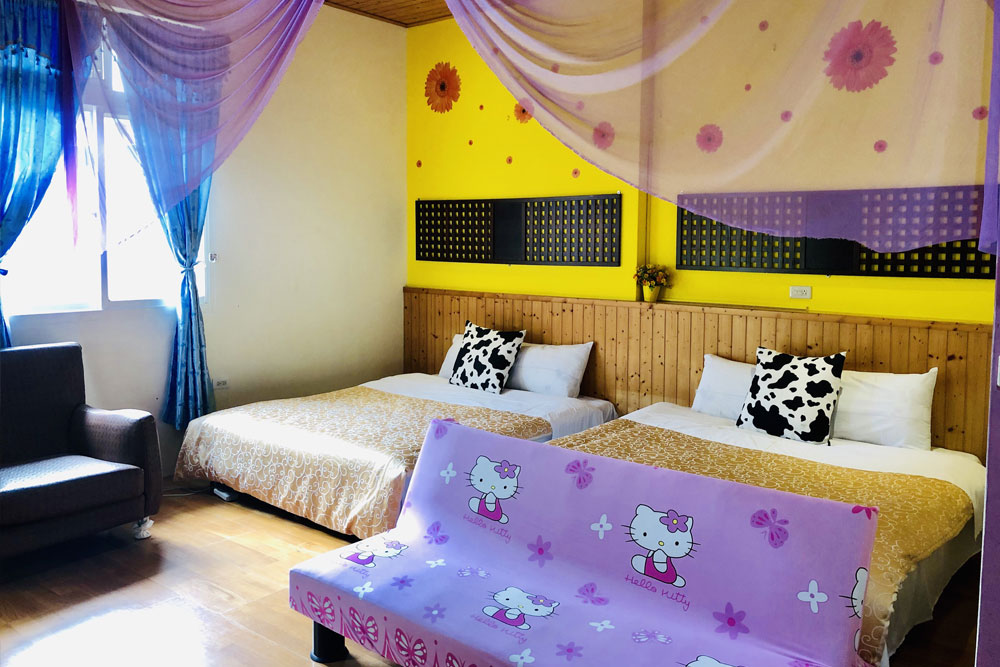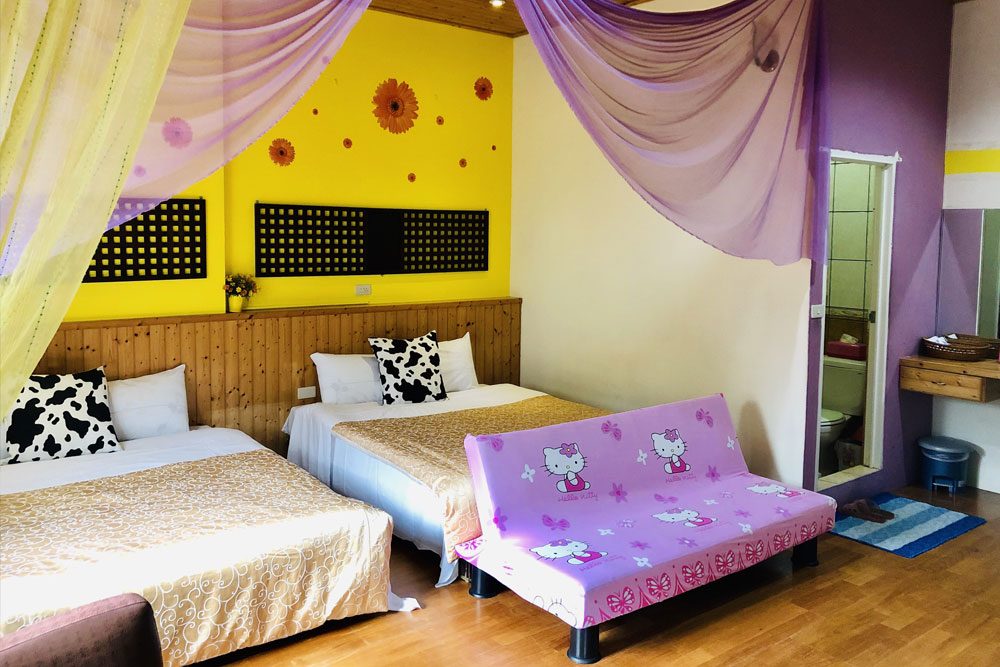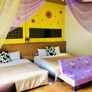 房型種類 平日 假日 定價 水仙花雙人房 $2600元 $3000元 $3500元 向日葵四人房 $2800元 $3800元 $4500元 地中海薔薇景觀房(2人入住) $2500元 $3000元 $3800元 地中海薔薇景觀房(4人入住) $2800元 $3800元 $4500元 浪漫薰衣草景觀房(2人入住) $2500元 $3000元 $3800元 浪漫薰衣草景觀房(4人入住) $2800元 $3800元 $4500元 包棟(4間房) $12000元 $16000元 $20000元 加一間超過14位以上 $14000元 $18000元 $22000元